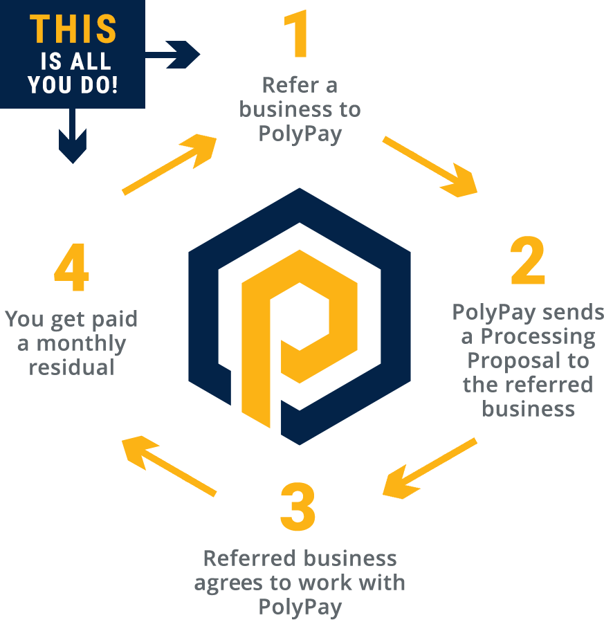 - Earn recurring residual payments when they sign up for PolyPay's services